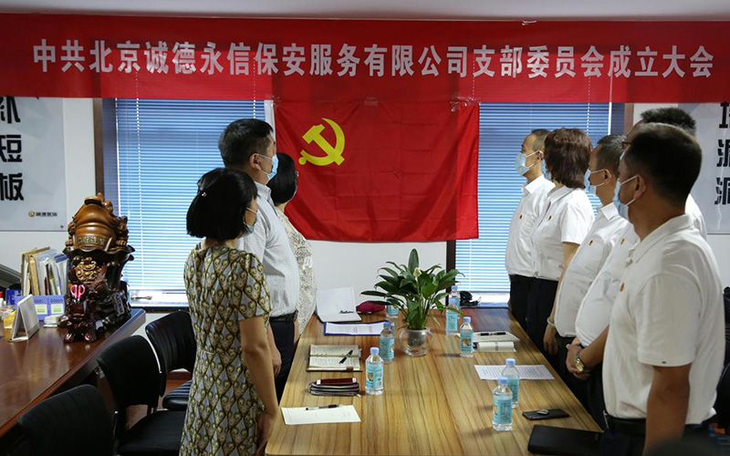党旗红,企业兴。党支部大会在庄严的国际歌声中圆满落幕。诚德永信的党建工作和企业经营从此步入一个新的发展阶段。公司上下将时刻与党同心,与时代同步,在各级党委的关怀指导下,积极为公司的各项建设发挥力所能及的能量,努力将公司锻造成为国内领先的现代化保安服务集团,用实际行动为客户谋福利,为社会做贡献!